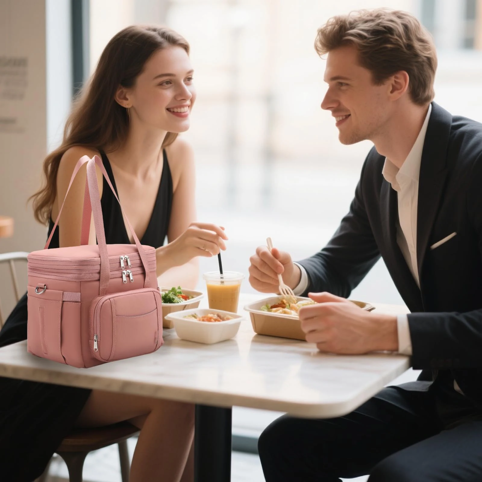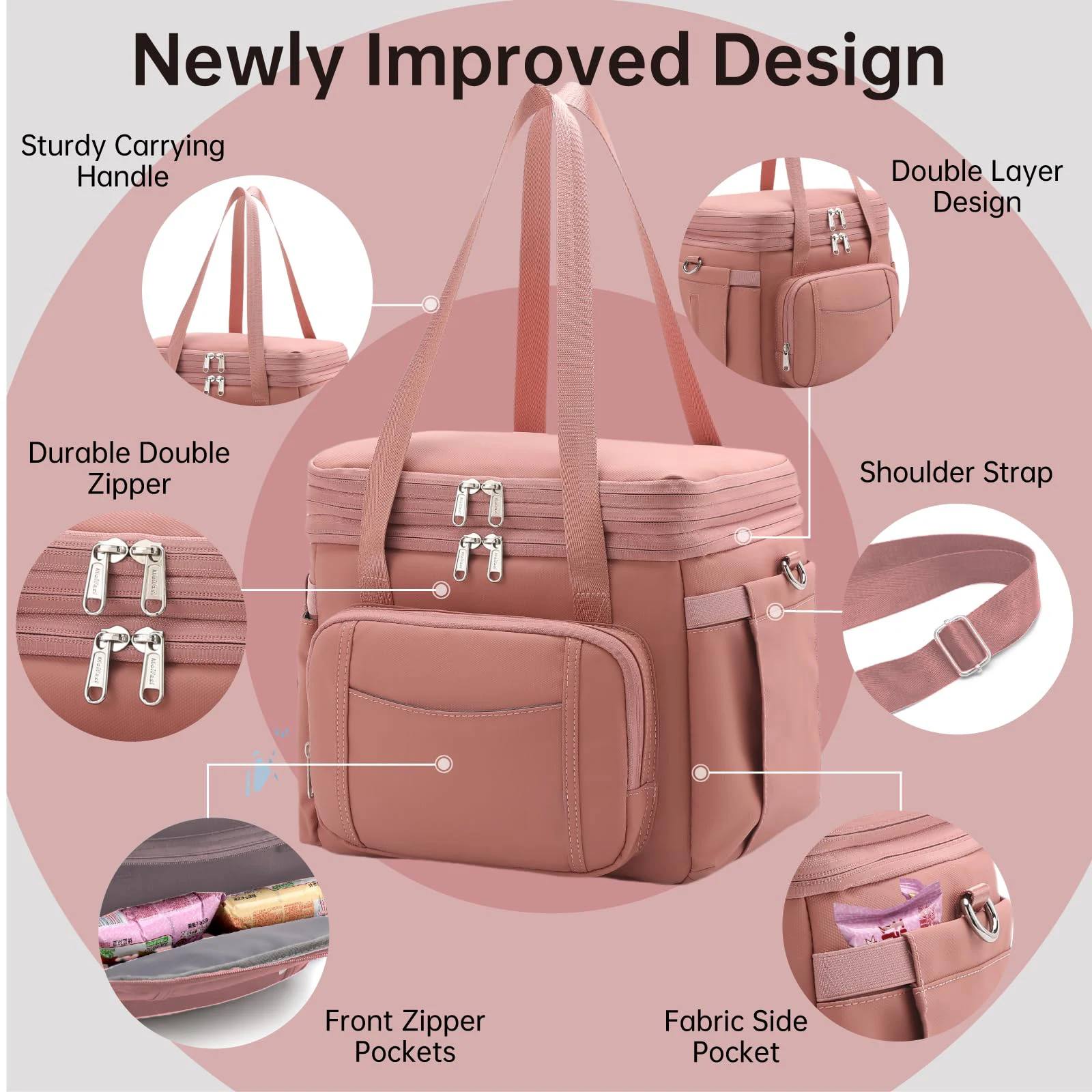 Large Expandable Insulated Lunch Bag Double-Layer Insulated Lunch Bag with Leakproof for Men Women Reusable Lunch Tote Cooler Bag with 6 Pockets Large Lunch box for Adults Work Outdoor Beach Trip