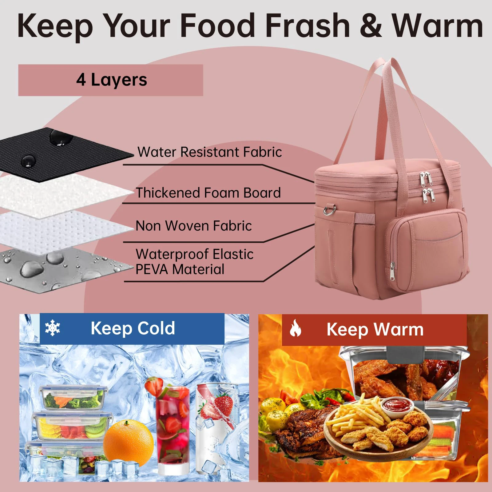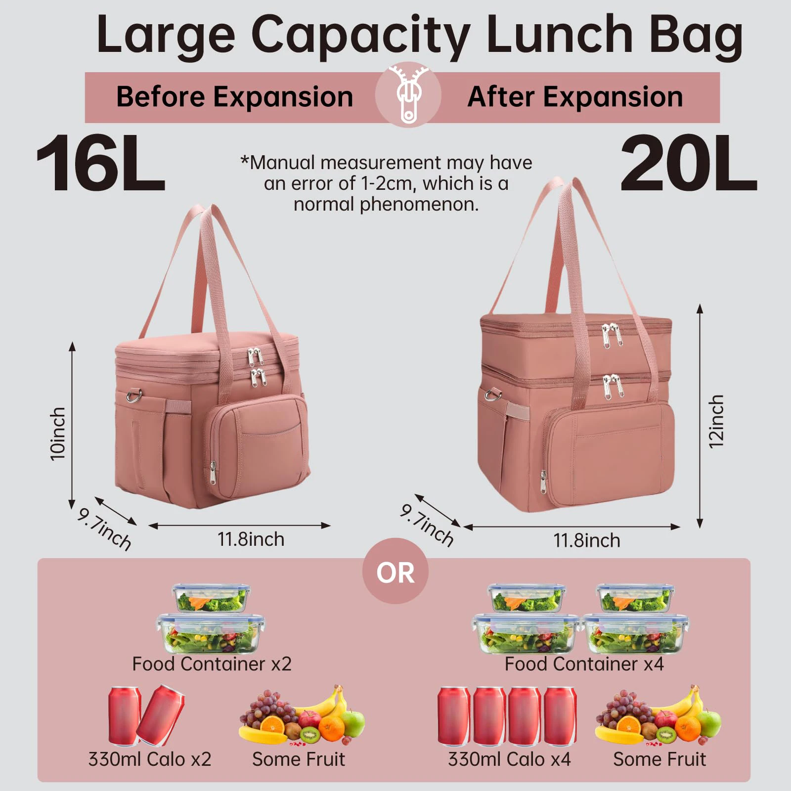Expandable Double-Layer Insulated Lunch Bag Polyester 8L Waterproof Foldable …