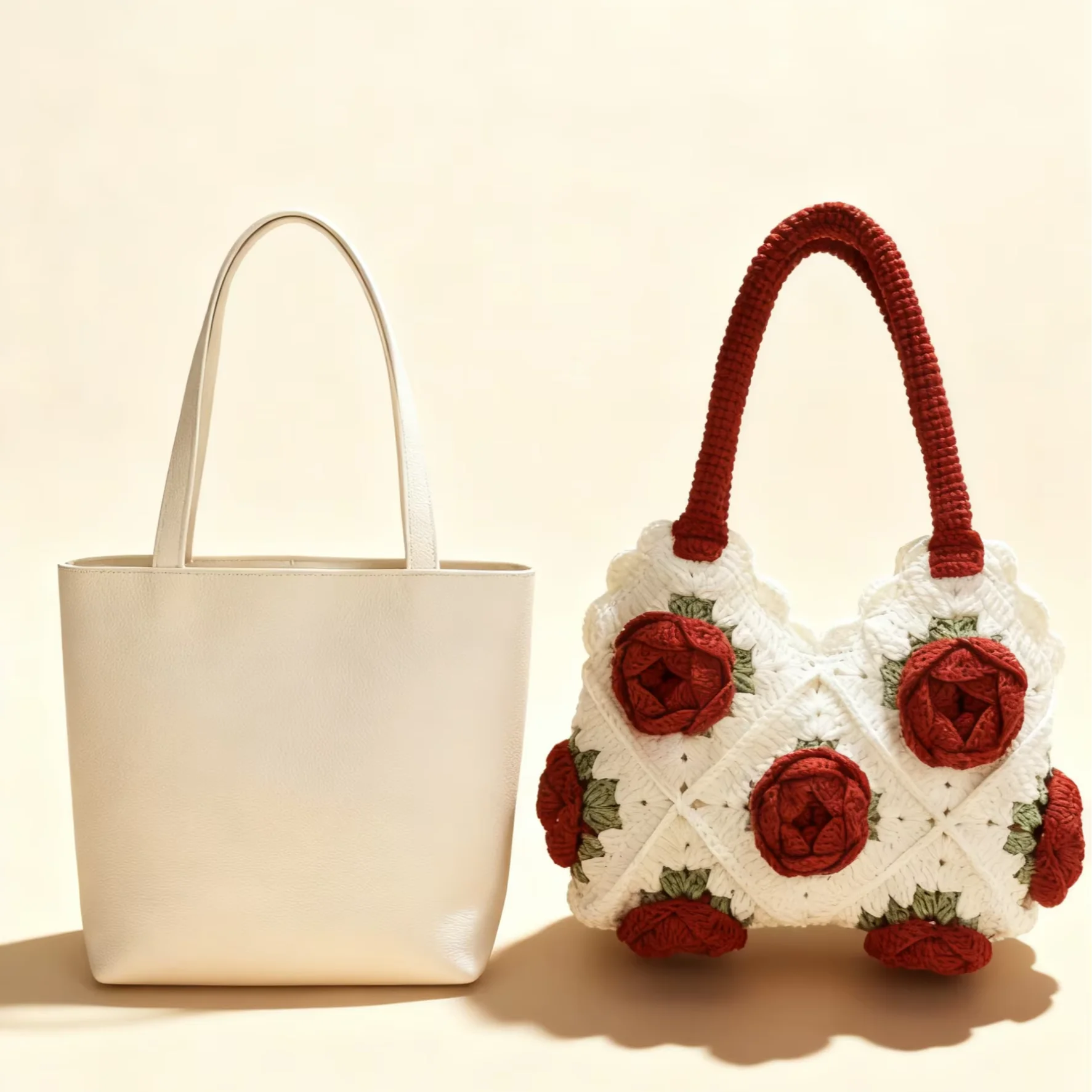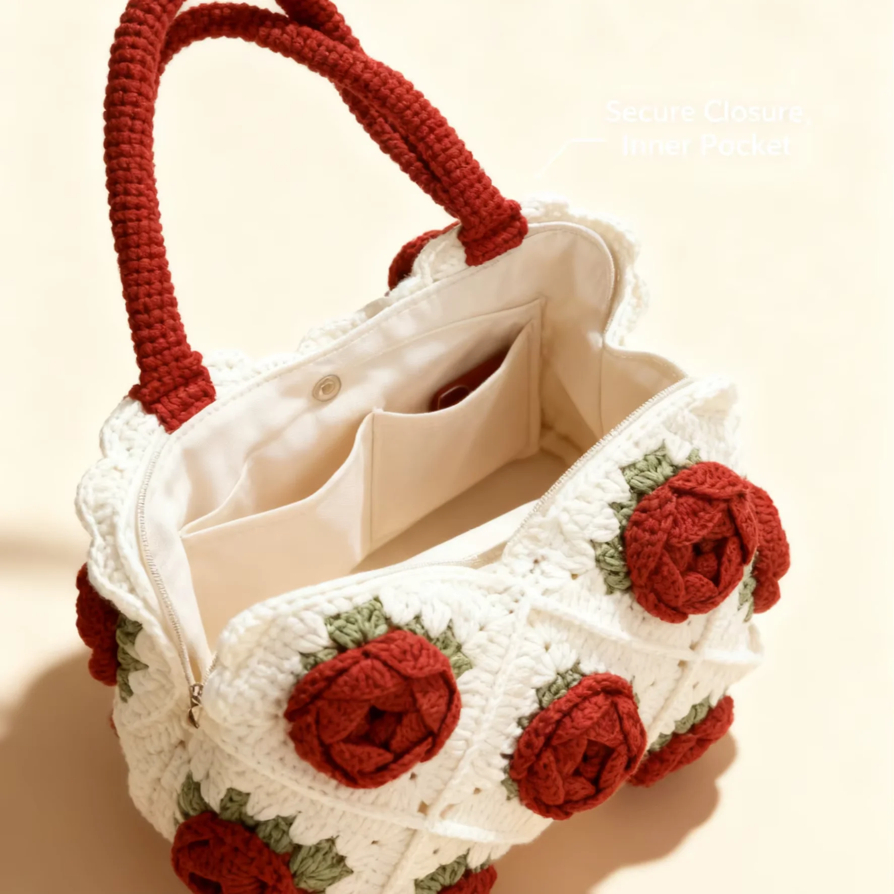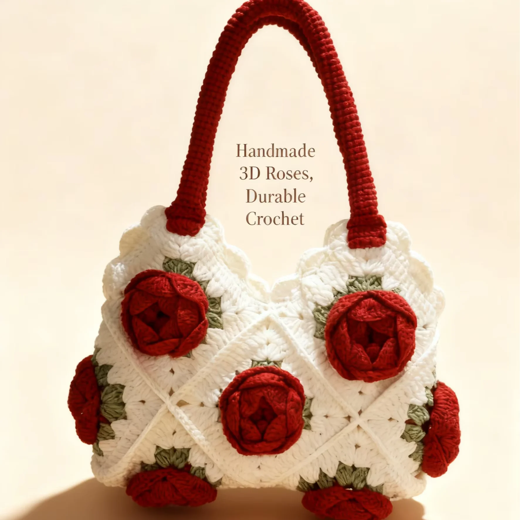 Women’s Handmade Crocheted Bag Rose Series Grandmother Handbag Embroidery Open
